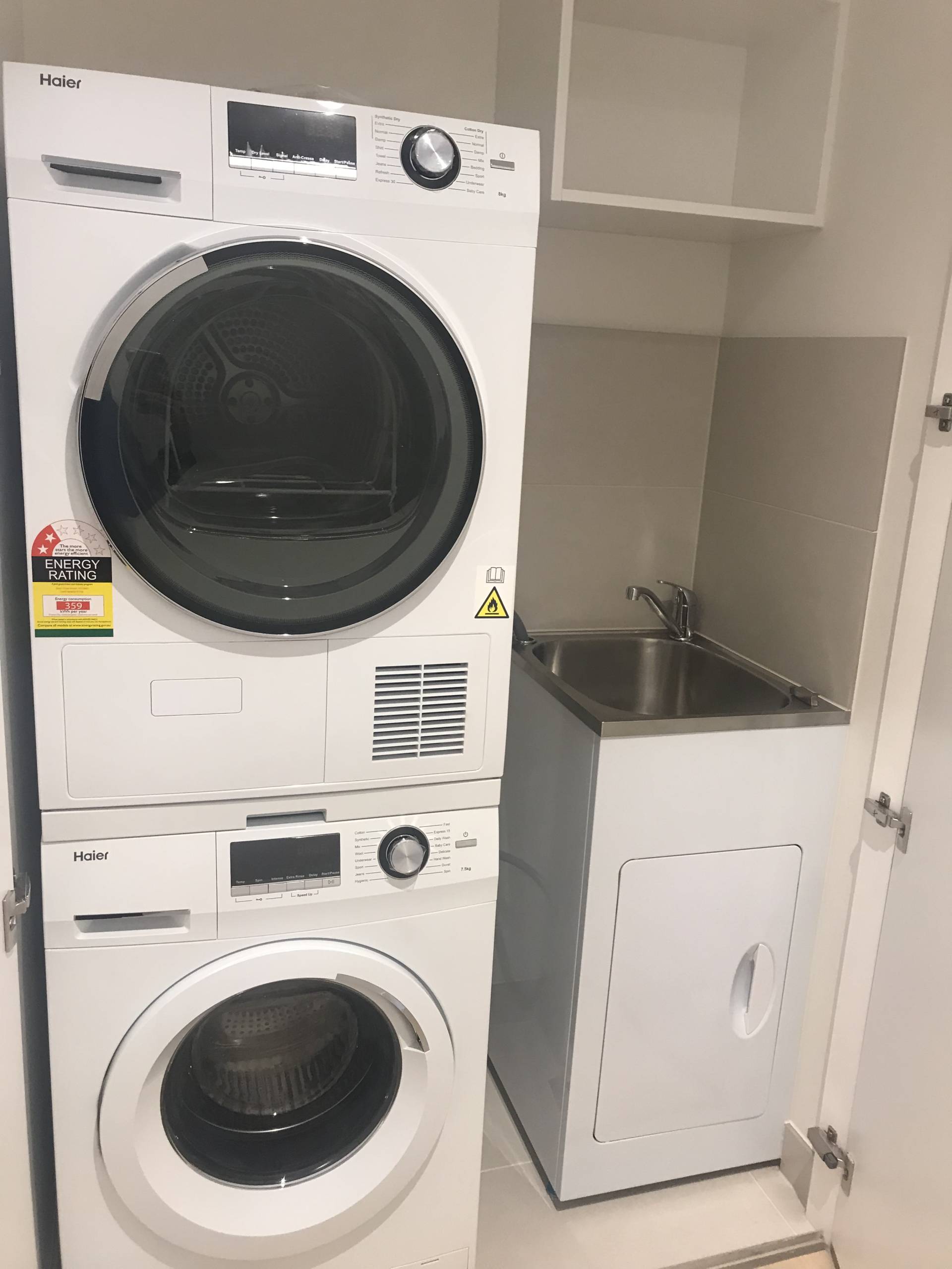 • Appliances include washing machine, dryer, in-built fridge, microwave