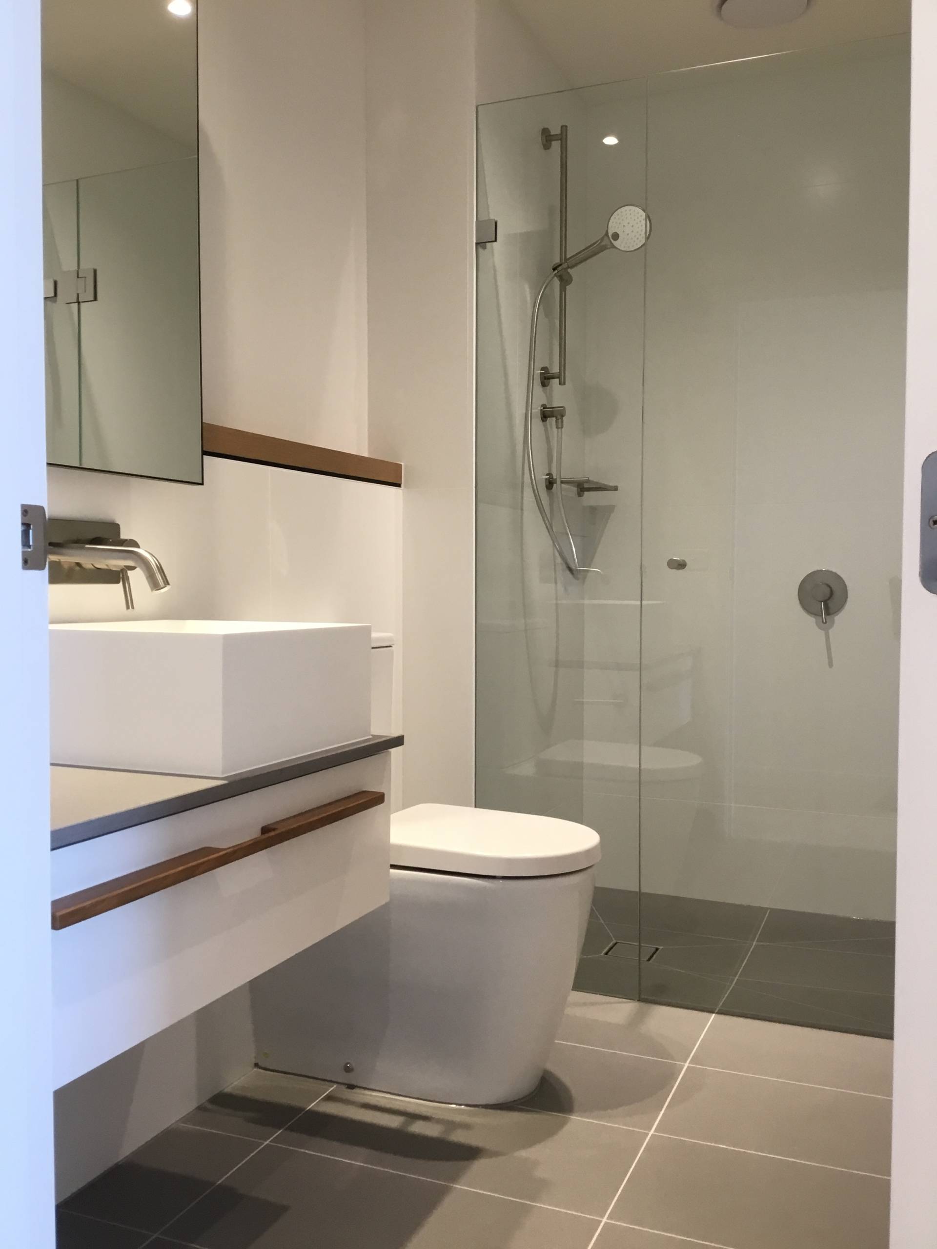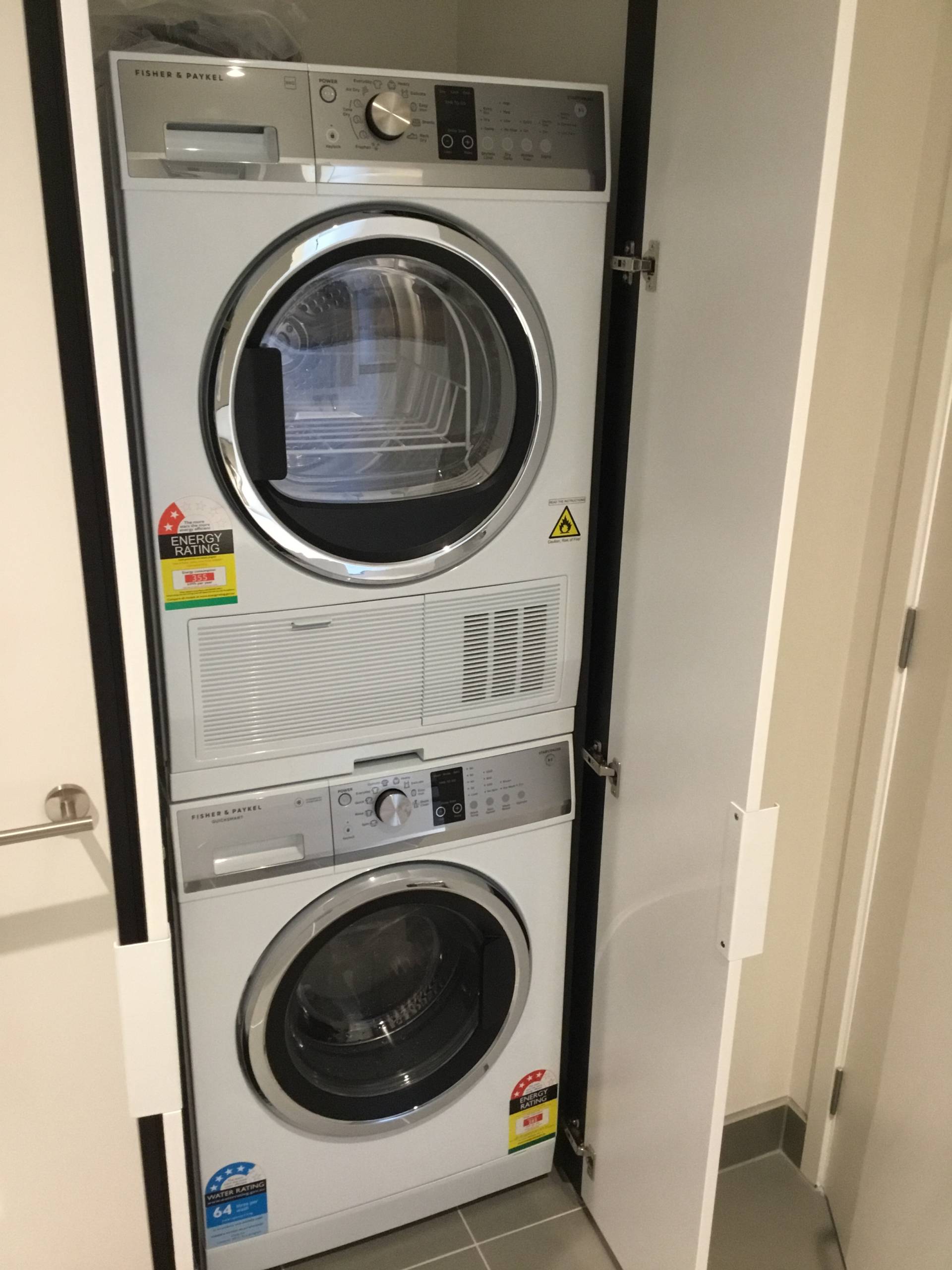 • Contemporary bathroom with private laundry including washing machine & dryer