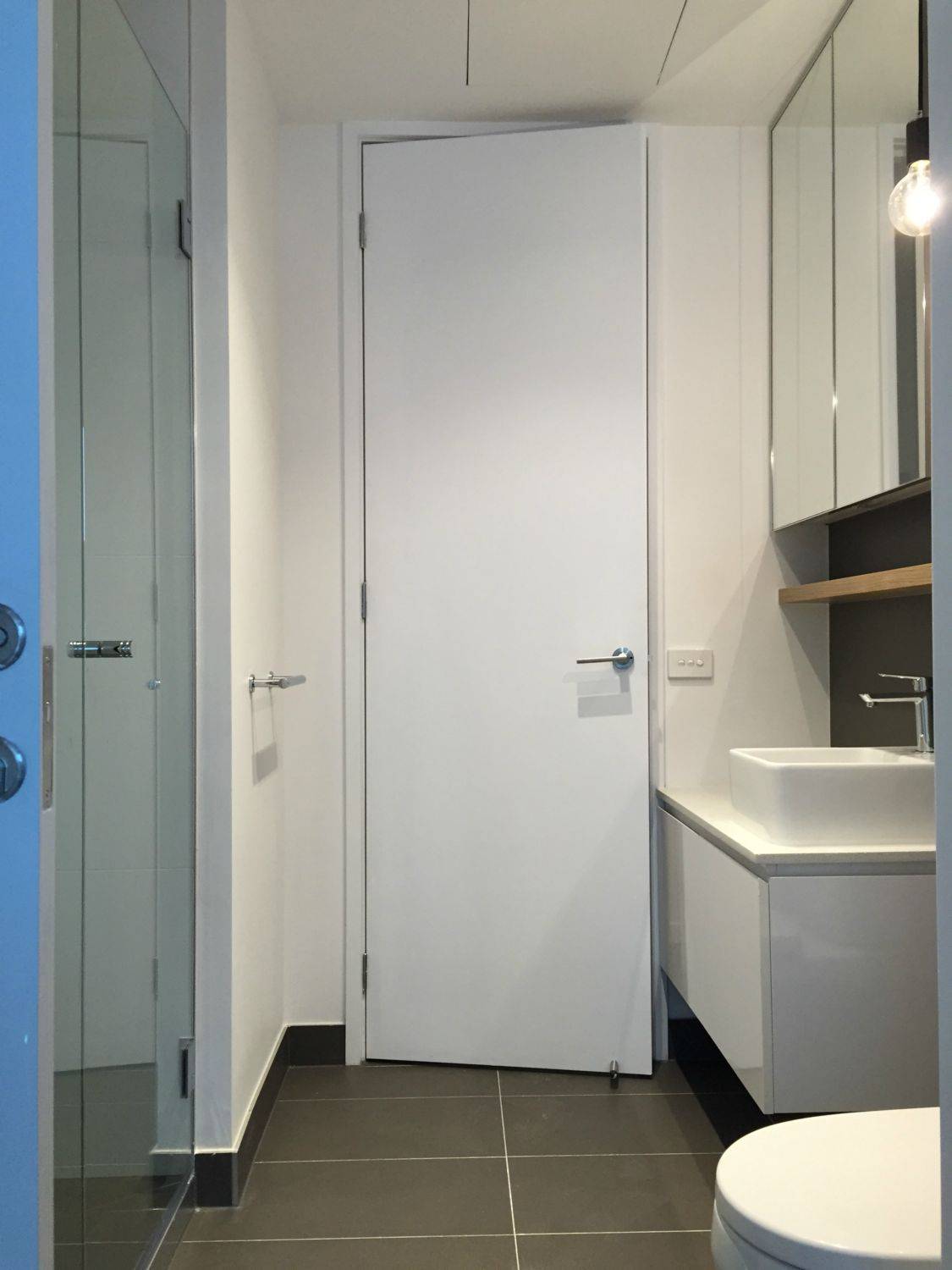 Contemporary bathroom with ample bench & storage space