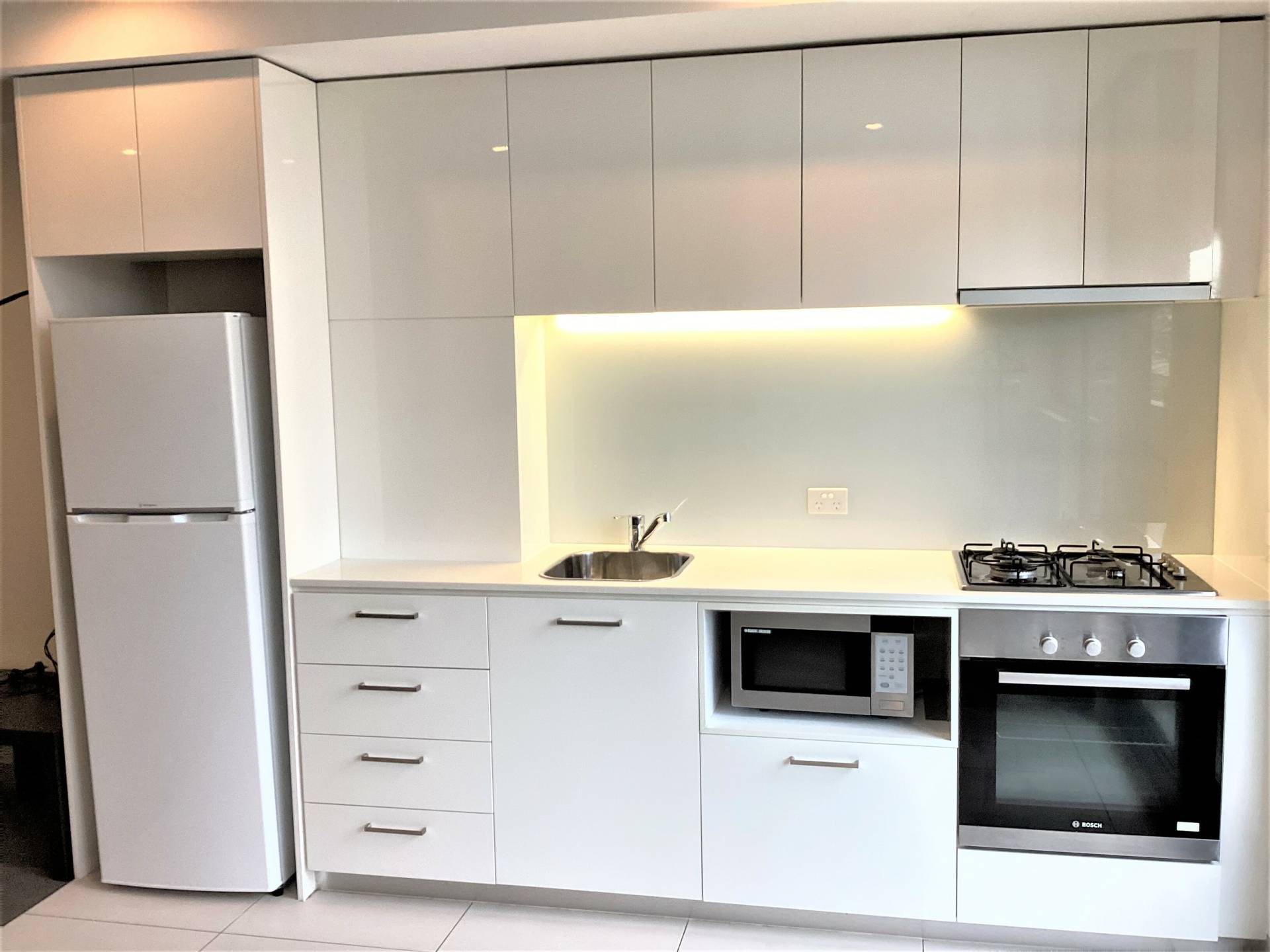 - Stylish Kitchen with caesarstone bench top, 2pac finish cupboards & drawers, and stainless steel Bosch appliances