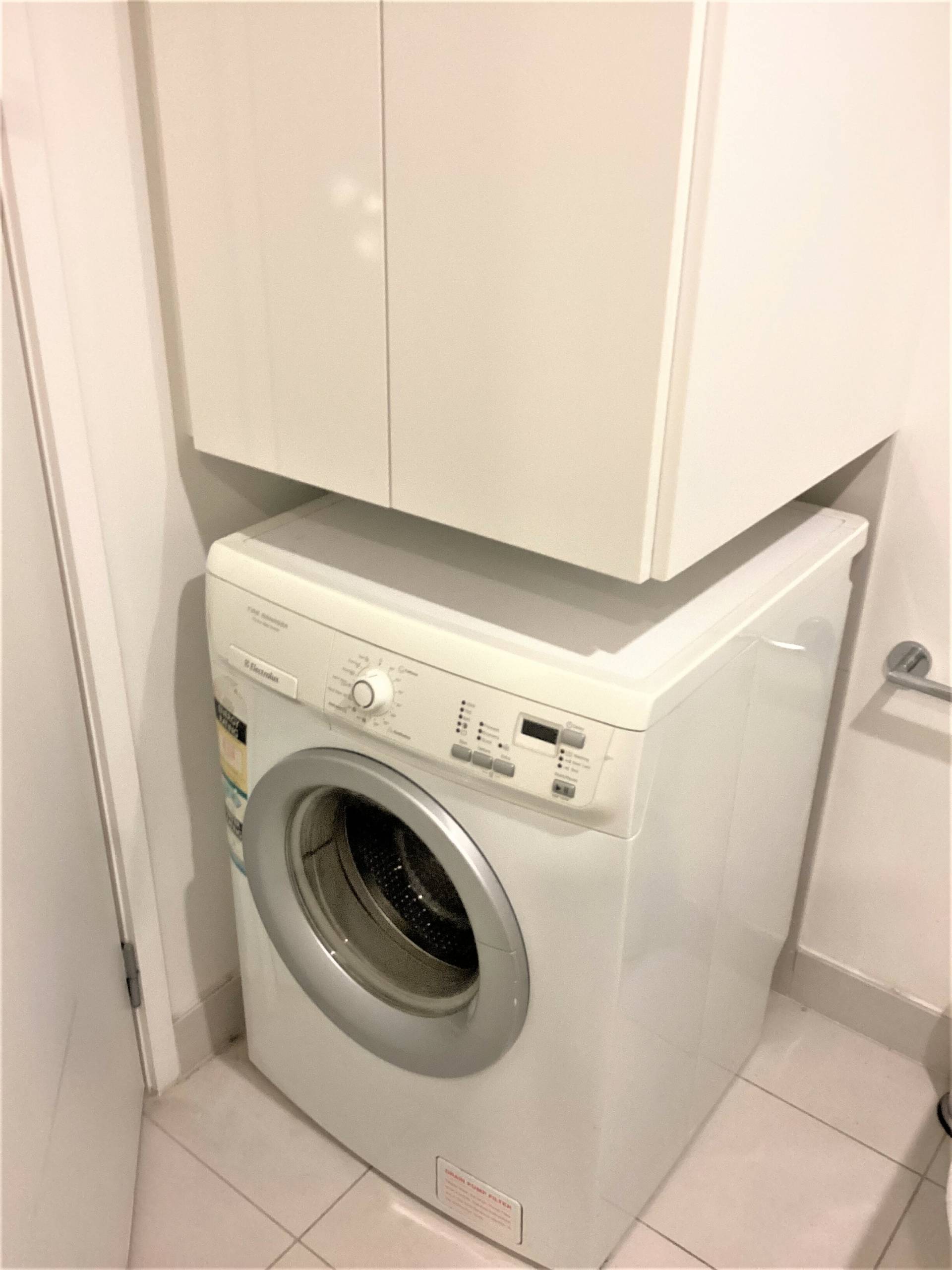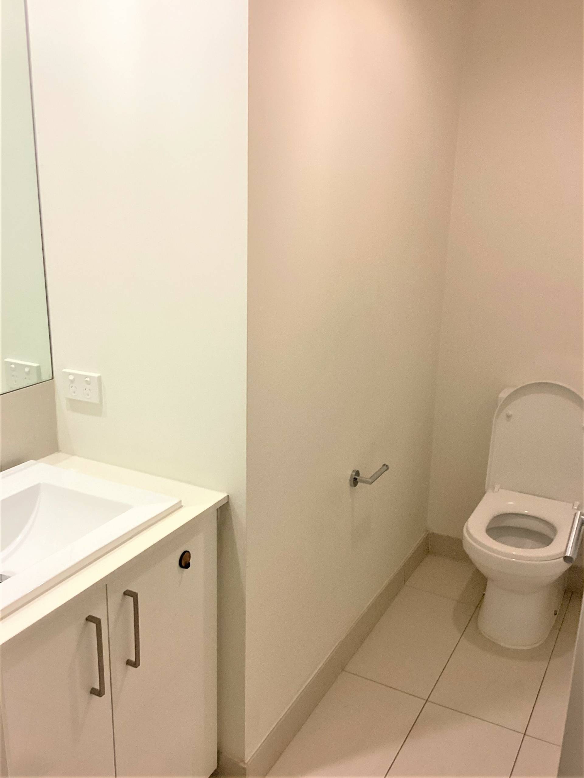 - Contemporary bathroom with vanity unit and private laundry
