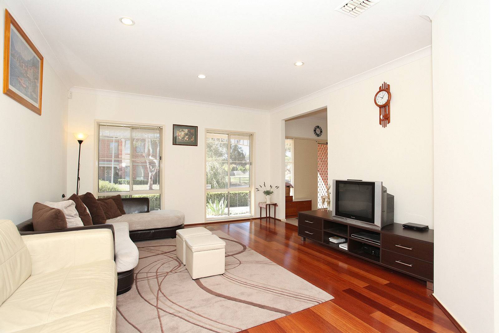 This well presented double storey family home features four generous bedrooms, extra study room, two bathrooms with separate toilet room, spacious formal lounge and dining and large family/meals area adjoining a well-equipped kitchen with ample cupboard space.