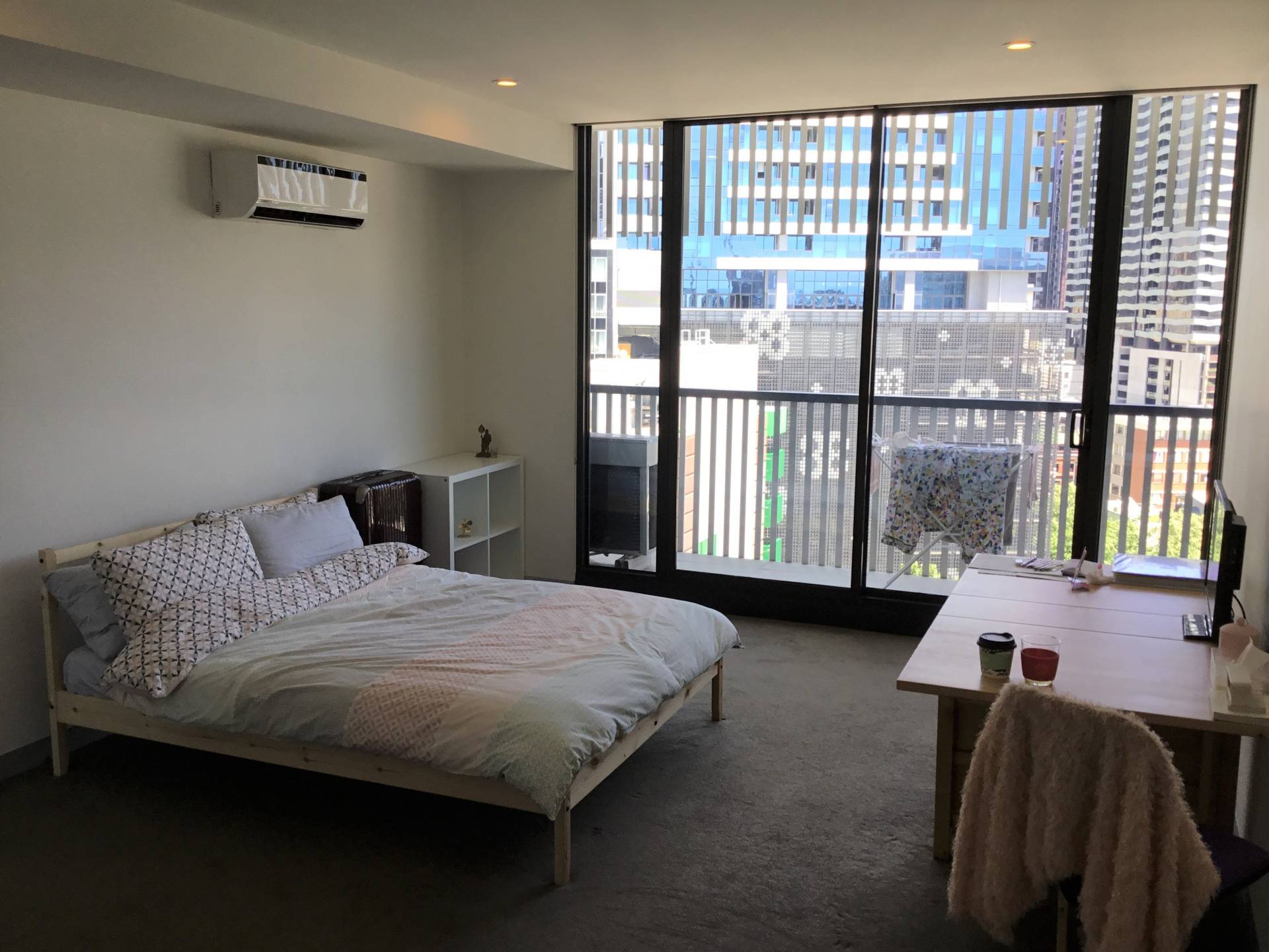 - Open living & bedroom with floor to ceiling windows