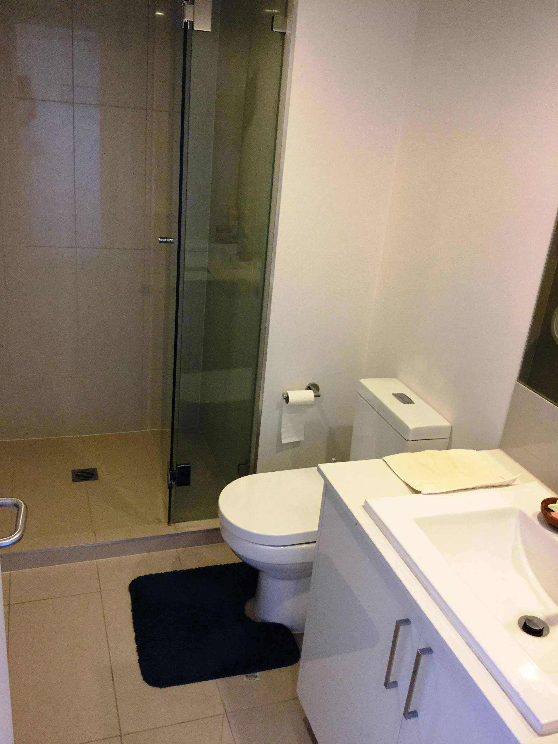 - Contemporary bathroom with vanity unit and private laundry